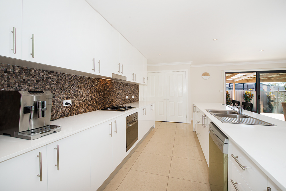 – Stylish kitchen with waterfall island bench – quality stainless steel appliances