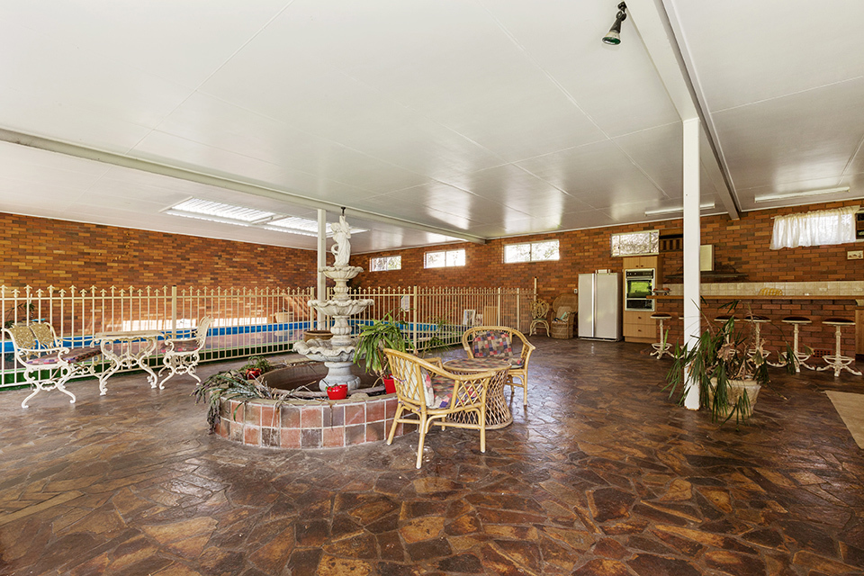 There is a huge Mudgee slate flooring recreational room with inground pool, spa and kitchen facility. The owners are even including a full size billiard table in this room.