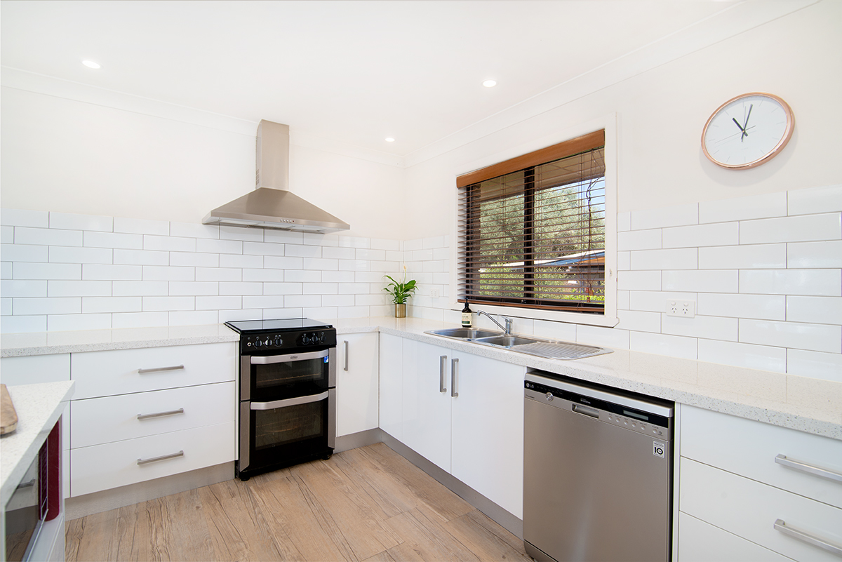 – Fully renovated open plan modern kitchen with island bench, stone bench tops and loads of storage plus a study nook