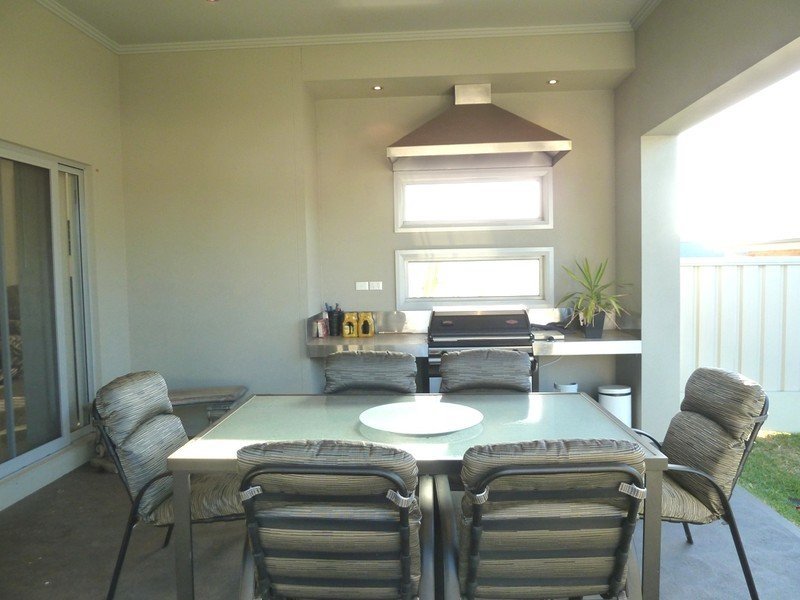 On the northern side of the home is a partially enclosed alfresco dining/entertaining area with built in barbecue and stainless steel range hood.