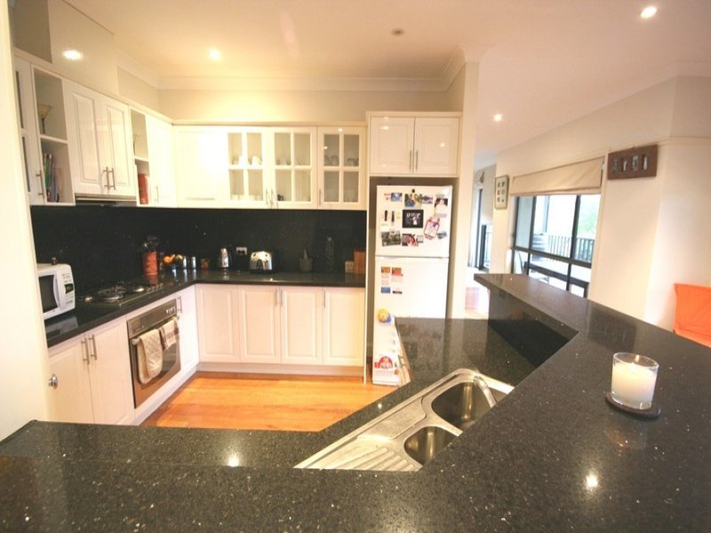 Granite bench tops and splash backs add a touch of class to the kitchen and good pantry space and stainless appliances complete the package.
