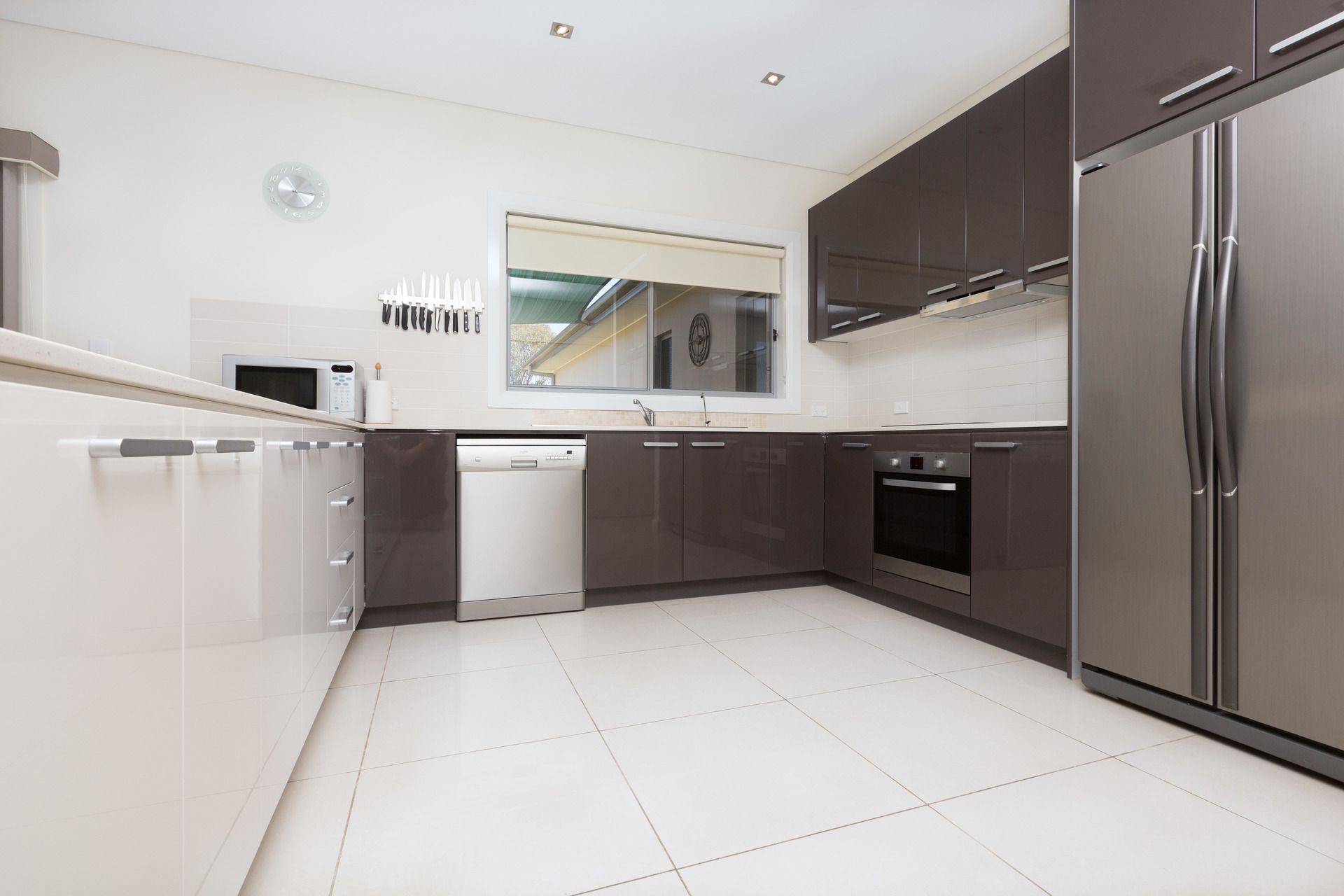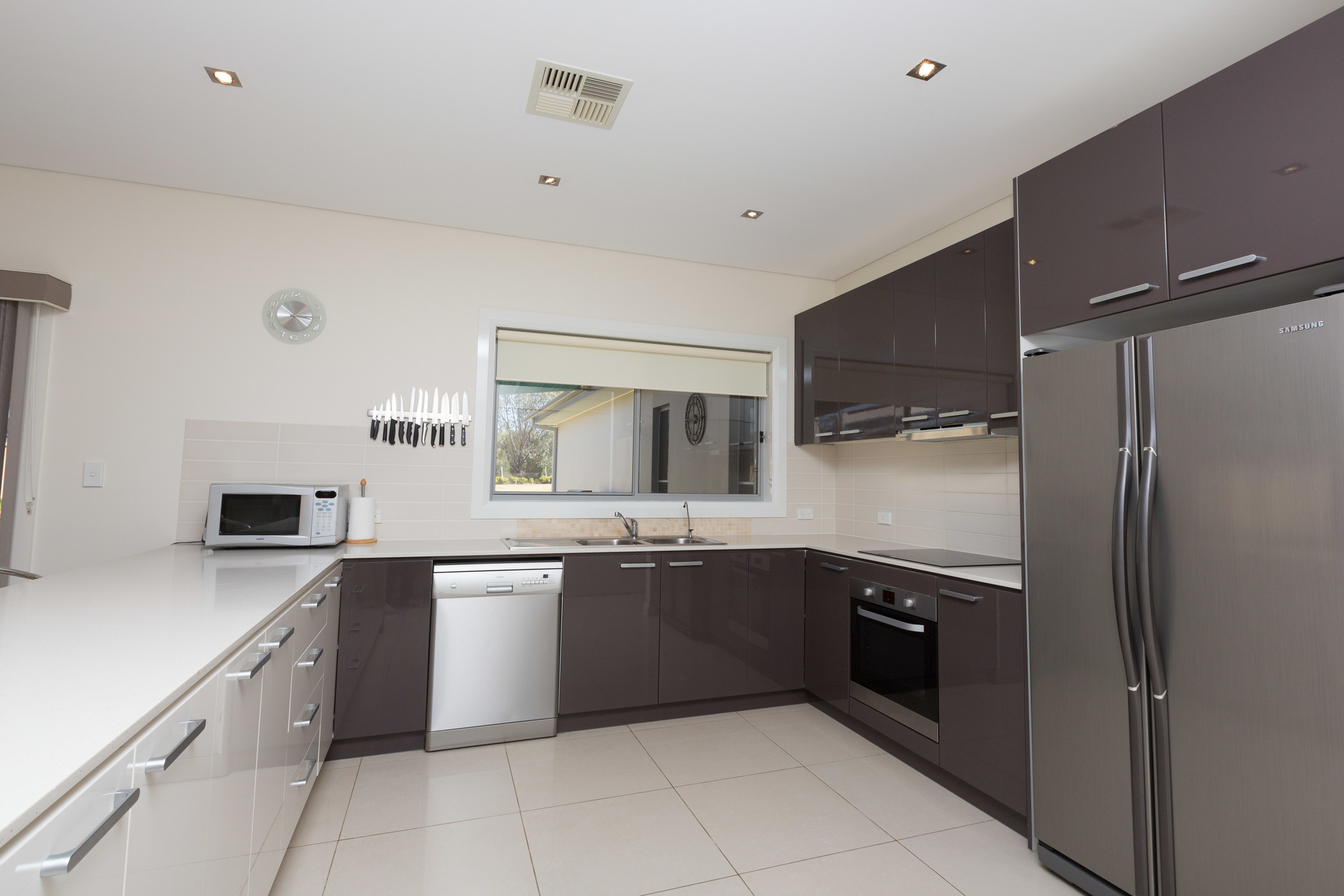 – Kitchen with Caesar stone bench tops, stainless appliances and huge walk in pantry