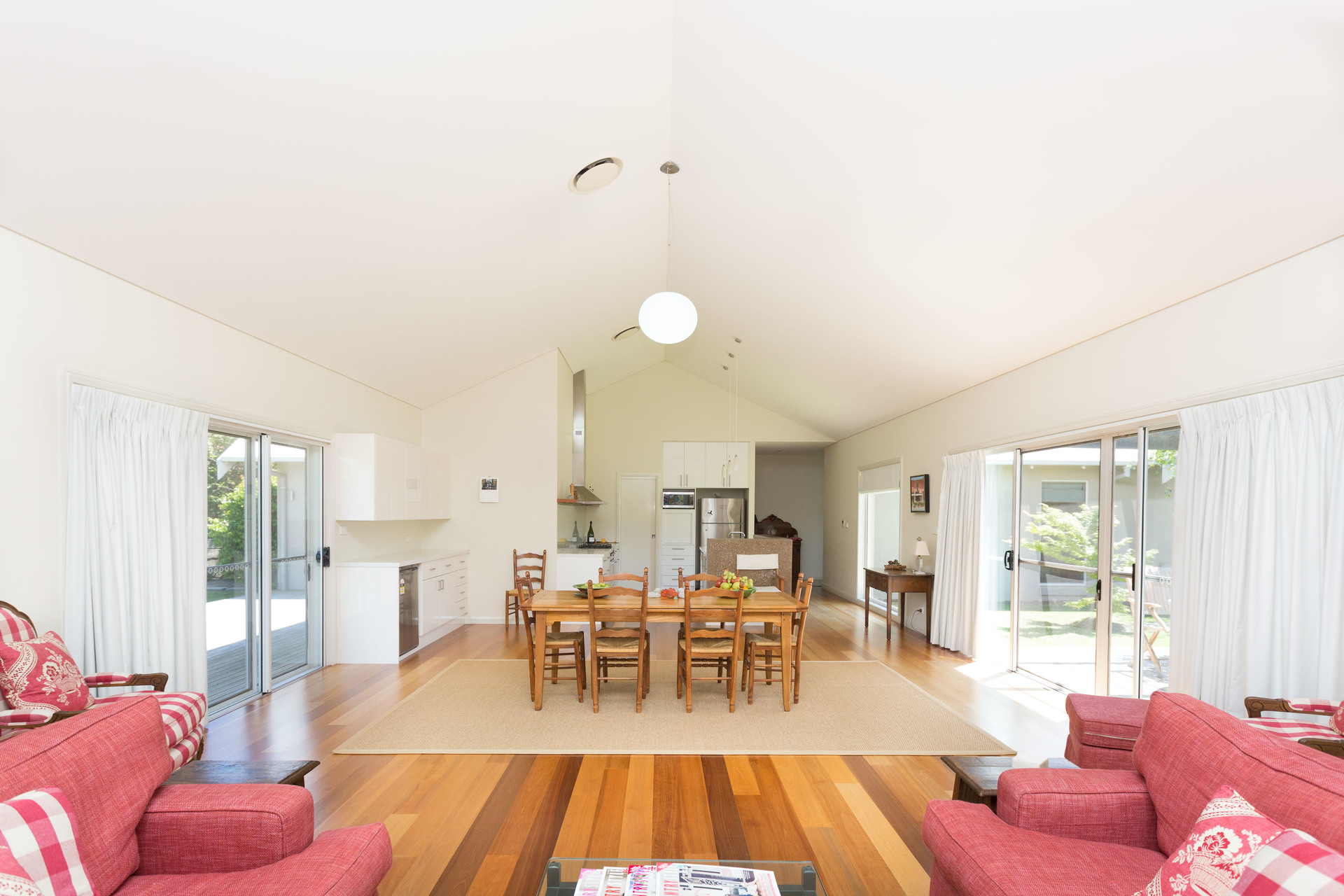 – Magnificent open plan living and dining area, polished Sydney blue gum timber floors