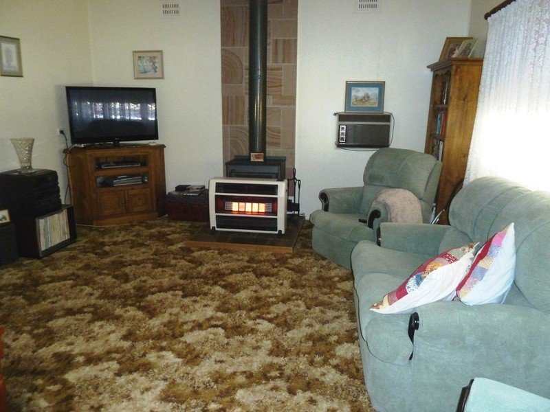 There is a large living area comforted by a wood heater along with gas, cooler, ceilings fans and reverse cycle air conditioning.