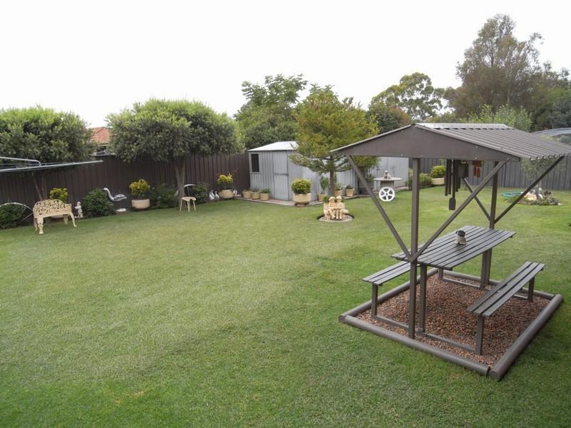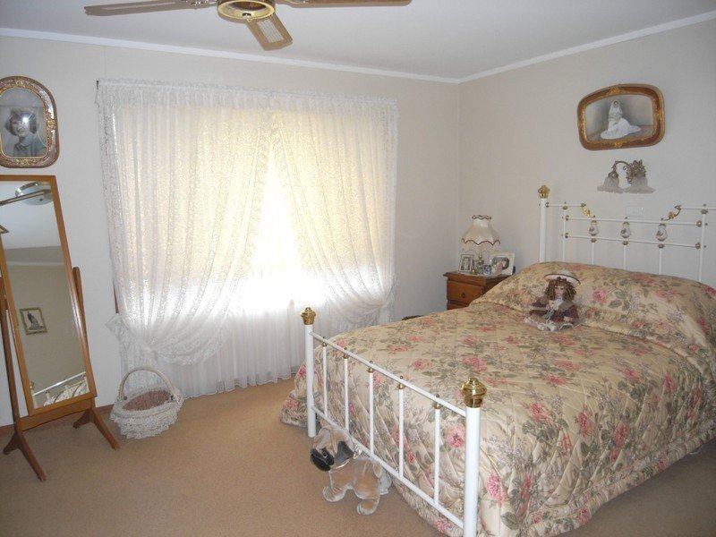 The yard is fully fenced, has a tiled verandah across the back of the home overlooking the beautiful garden, two garden sheds with power connected and an equipped bore for garden water. A single garage and carport house the vehicles.