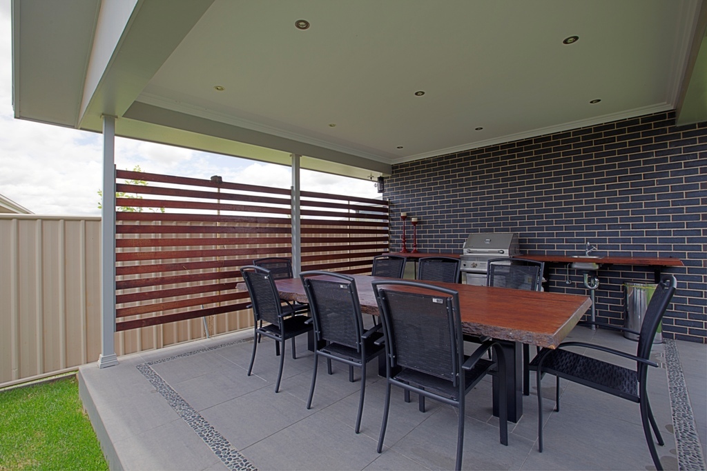 Entertainers will adore the covered al fresco area with its plumbed sink, solid timber table and benches and bar area.