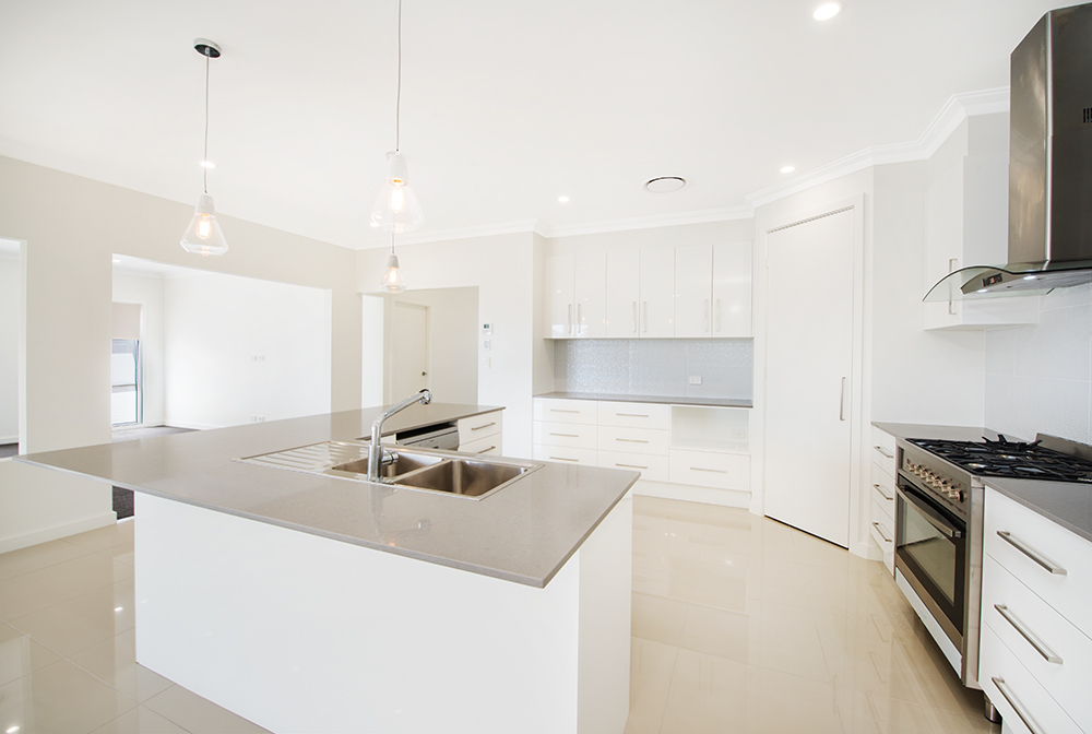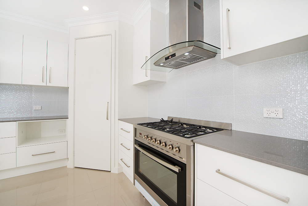 – Stylish kitchen with large Caesar stone bench top, quality stainless steel appliances