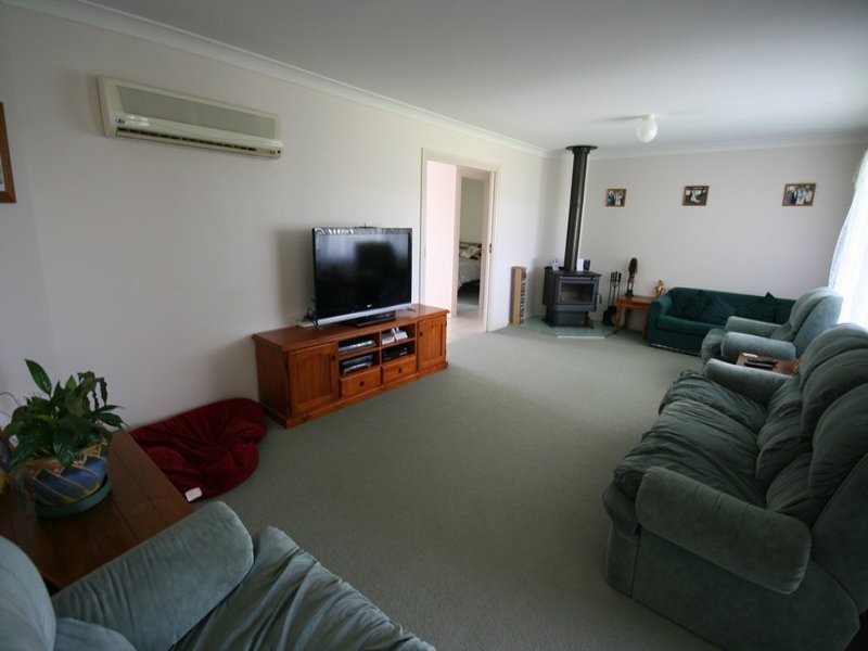 A generous flowing living area with reverse cycle air conditioning and wood heater adjoins the meals area.