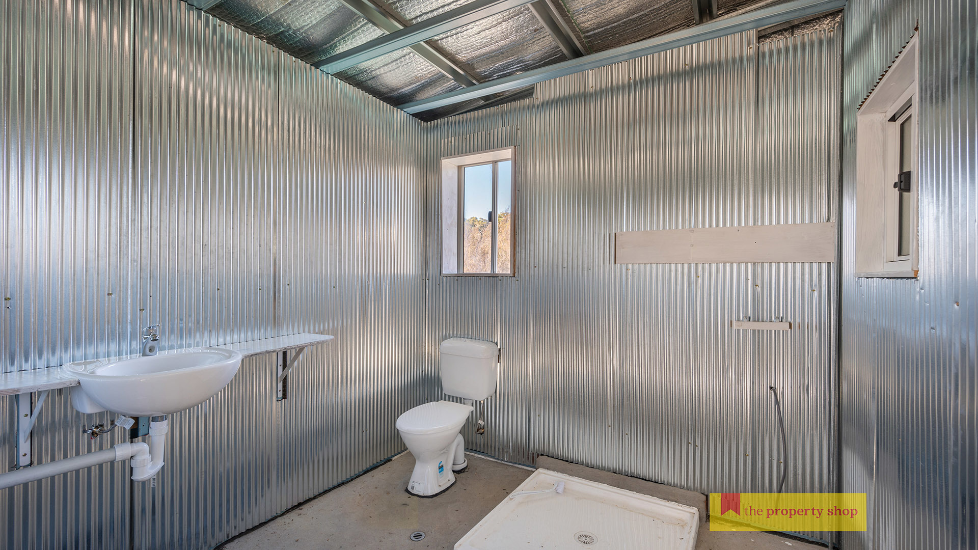 – “American Barn” style shed with concrete floor, basic bathroom (septic connected) & slow combustion wood fire.